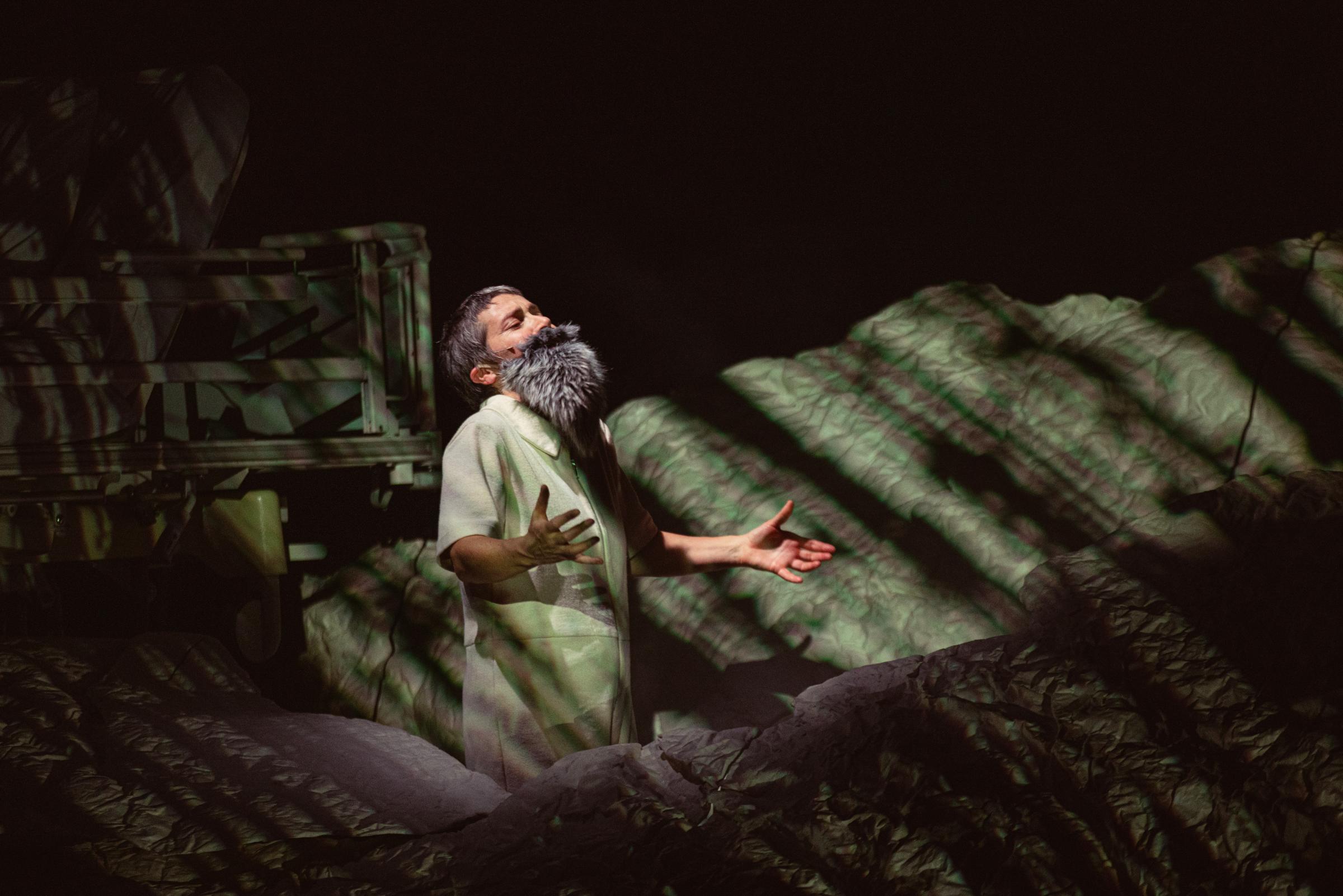 Each scene in his production is a playful variation on the theme of farewell. The stage becomes a surreal landscape where hospital beds float across an icy sea — a metaphor for life’s turmoil. Music and poetry become the grammar of a theatre that still finds reasons for joy in the saddest of stories.