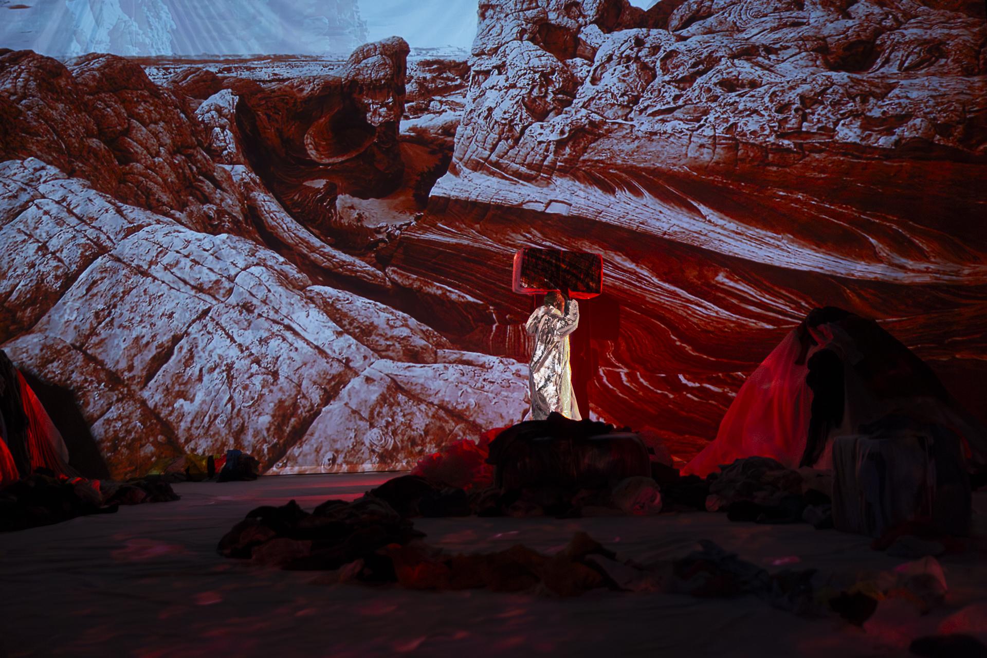 Against an apocalyptic backdrop, she brilliantly tackles the human disasters of fast fashion and Western feel-good ecology, reassured by organic labels and comforting promises of recycling. When one person’s sustainable dream becomes another’s disaster… With Egyptian composer Wael Sami Elkholy and three remarkable singerperformers, Wasted Land is a wild and liberating plea for decolonial ecology.