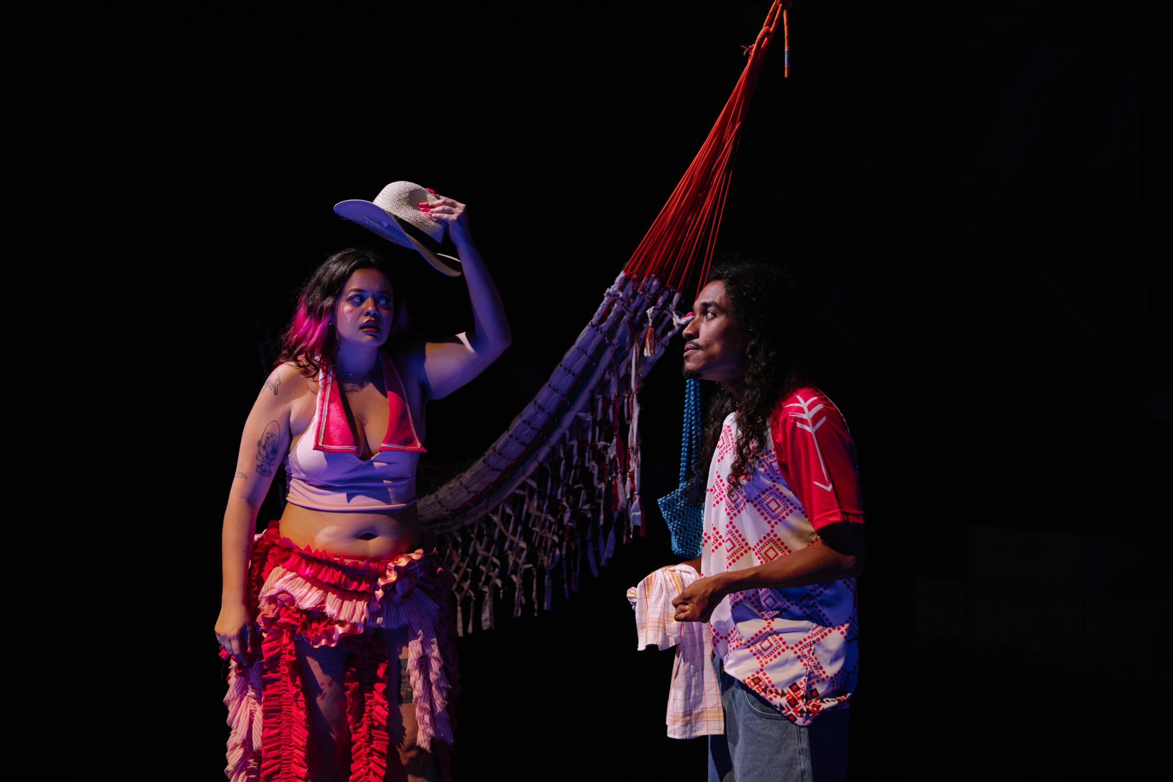 En évoquant le hamac comme moyen de transport et de passage transtemporel, la performeuse brouille les frontières, créant pour elle-même et pour le public une sorte de carte éphémère pour naviguer sur d’autres voies que les routes habituelles. Le hamac est la maison, le cocon, la balançoire et surtout le bateau qui guide sa navigation. Tout au long du parcours, des rivières du Pará au Brésil aux lacs de Suisse, le bateau hamac devient un être enchanté, reflétant son importance dans le voyage de l'artiste. Chaque île visitée par la performeuse et capitaine de ce voyage révèle au public une facette de son expressivité performative et festive.