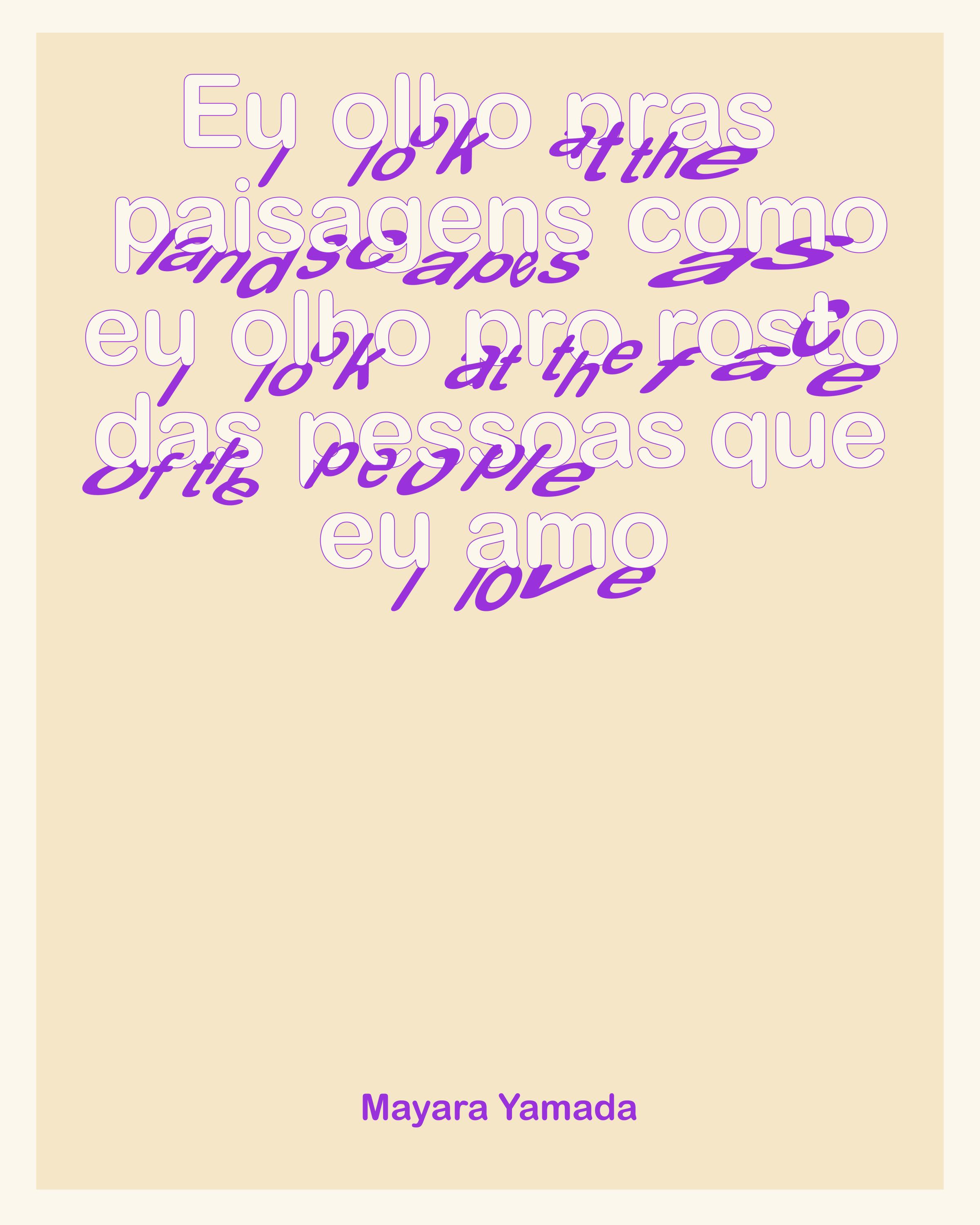 Chaque saison, Kaaitheater donne carte blanche : nous recherchons un texte, un essai ou toute autre contribution en lien avec le thème général de la saison, rédigé par l'un des artistes du programme. Pour janvier-juin 2026, Mayara Yamada a écrit Eu olho pras paisagens como eu olho pro rosto das pessoas que eu amo, dans lequel elle décrit une « pratique artistique trans-situ » et nous invite à laisser fondre notre cœur.