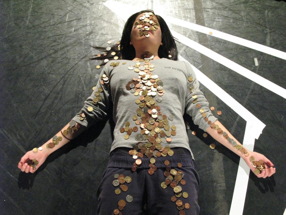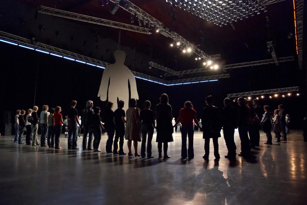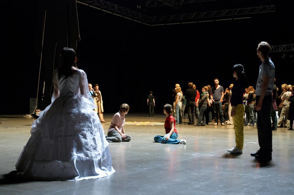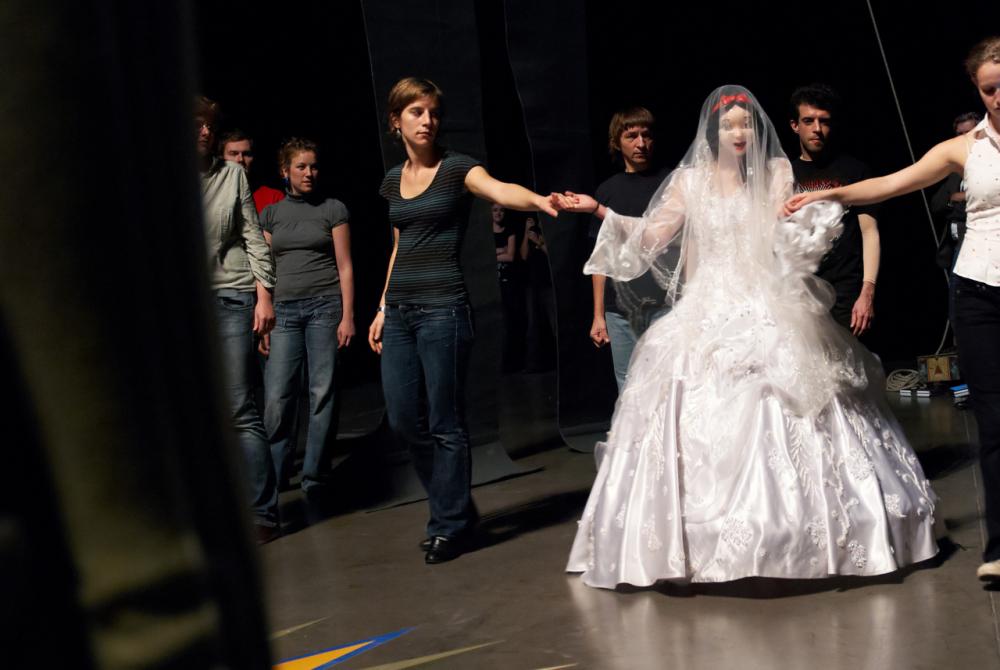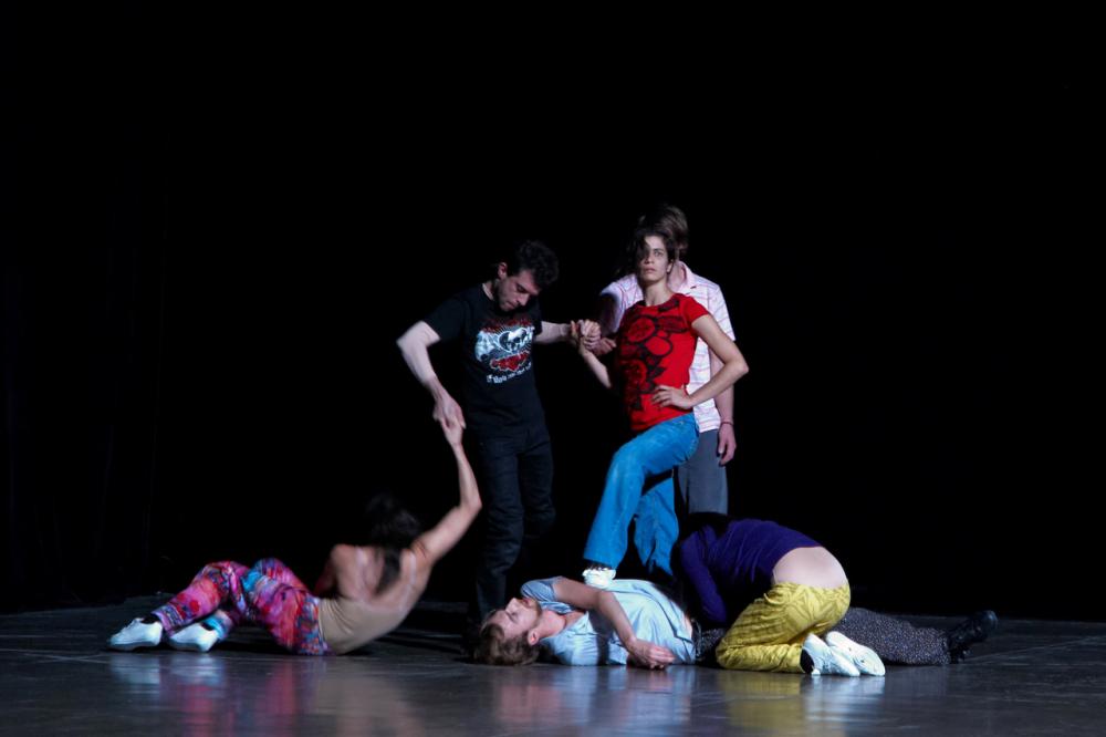 artistic direction Meg Stuart | created and performed by Francisco Camacho, Hermann Heisig, Kotomi Nishiwaki, Sabile Rasiti, Frank Willens, Sigal Zouk | dramaturgy Bart Van den Eynde | installation Doris Dziersk | text Tim Etchells and Damaged Goods | costumes Jean-Paul Lespagnard | sound Douglas Henderson | light design Jan Maertens | video & visual material Vladimir Miller | production management Christine Peterges | scenery Bodo Herrmann | scenography assistant Anna Pas | costumes assistant Maria Göldenitz | production assistant Marlène Bunge | production Damaged Goods (Brussels), steirischer herbst (Graz) | support Flemish Authorities, Flemish Community Commission | thanks to Robert Henke & ABLETON LIVE, Dag Kemser, Krisana Locke & Ali von Stein, Stephanie Maher & the Ponderosa team, Peter Stamer, Sophia Stepf and all dancers who attended the rehearsals in Berlin and Graz