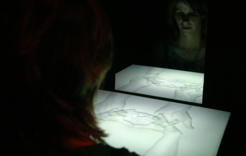 Box with holes seeks to explore the relationship between touch and its visualisation. How do we see and experience inter- human interaction in a world where we contact each other more and more through technology?