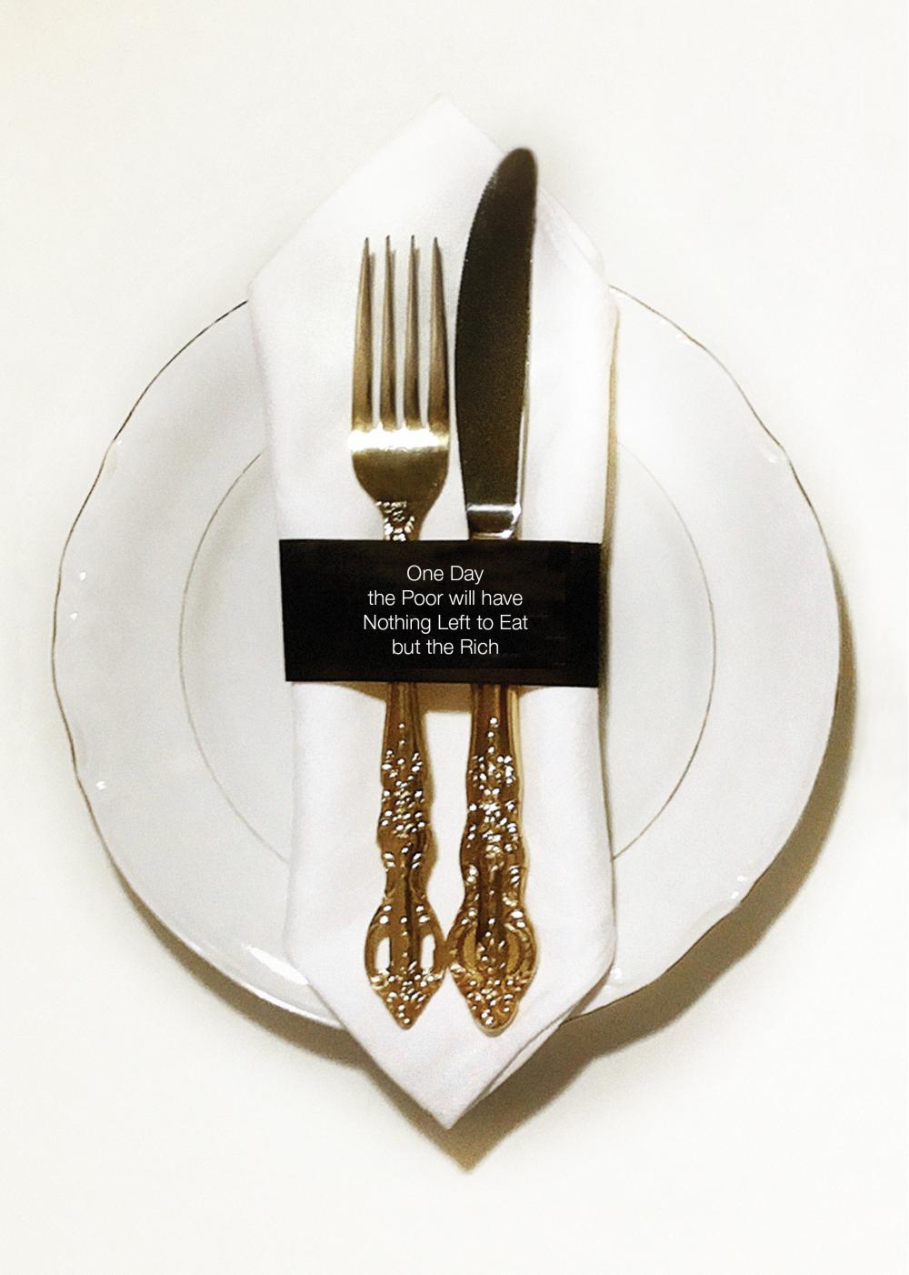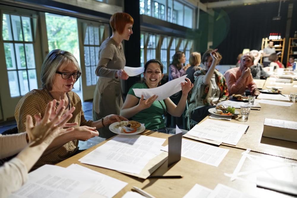 ‘Food for thought’, that is The Discreet Charm of Marxism. Marxist texts on the class struggle and revolution are staged as a six-course meal, nicely divided into portions, from starter through main course to cheese platter and dessert. You eat, read and discuss it with the other guests. The ‘food for thought’ is presented in graphics, while real food and drinks are served as ‘books’. Nobody will go hungry! In this ‘conversation piece’, the audience has the main role, but the extent to which you take part in the conversation is entirely up to you. No talking with your mouth full, though!