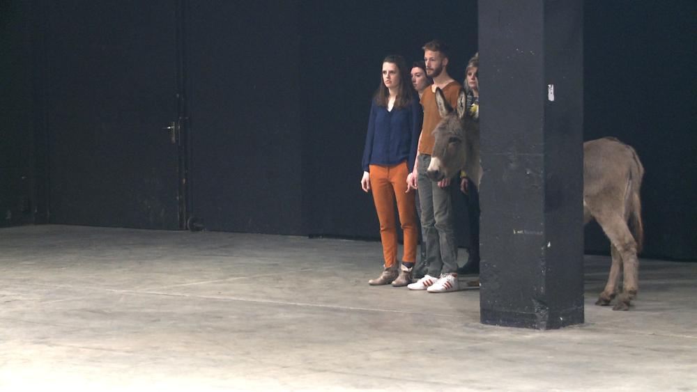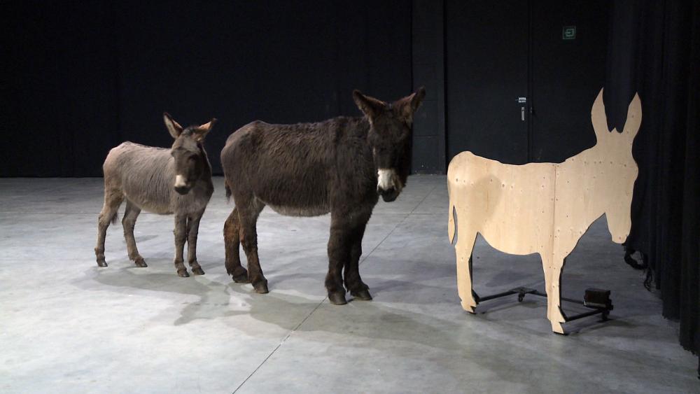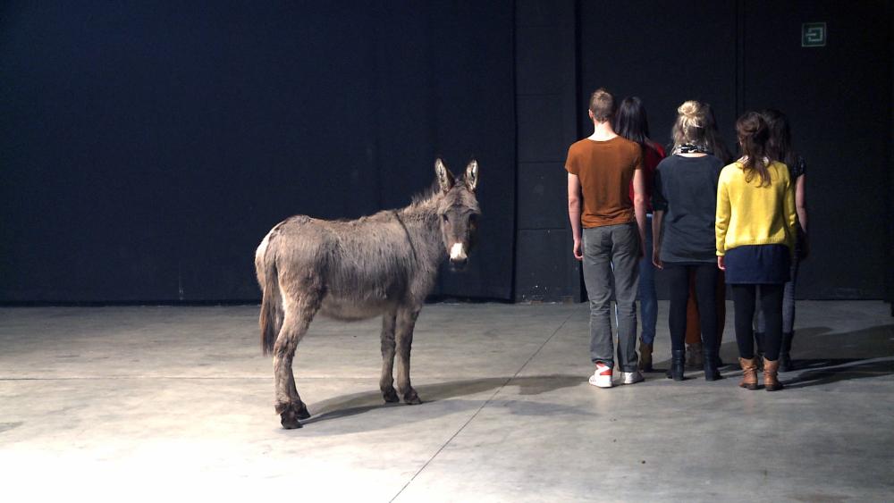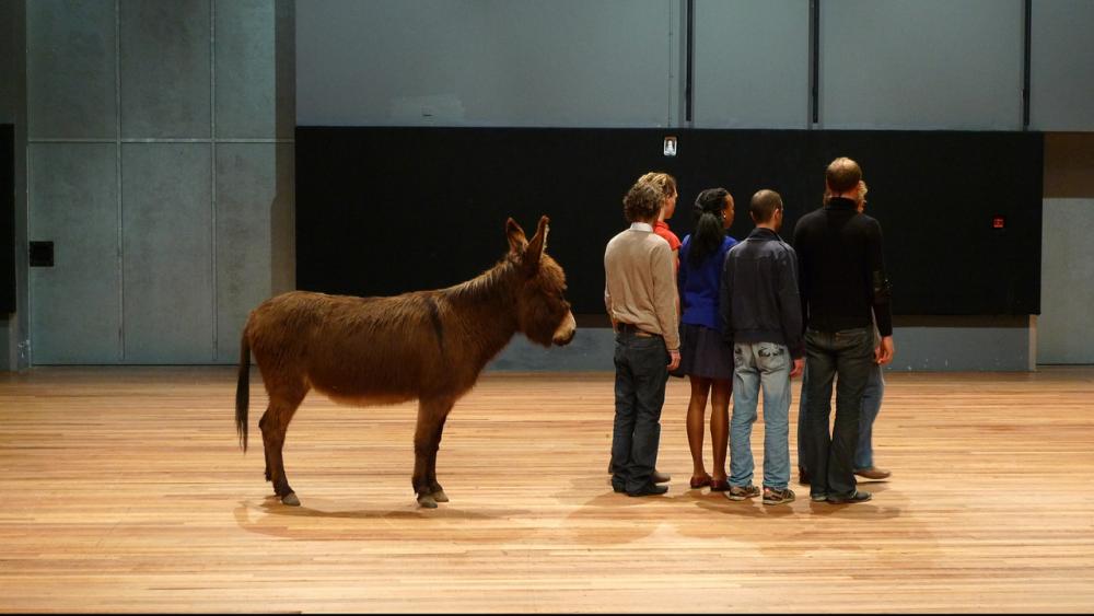 In BALTHAZAR (1. Stories) a donkey is at the ‘centre of the action’. It is not reduced to the role of a piece of living scenery, but is given the leading part. A group of human performers is confronted with him. Balthazar (1. Stories) is inspired by Robert Bresson’s film Au hasard Balthazar (1966). The film tells the eventful life story of a donkey.