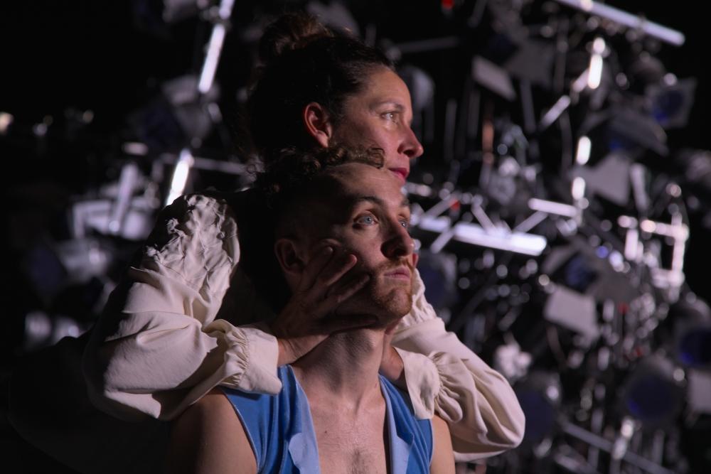 Imagine a tower of countless lamps and light sources. It comes to life buzzing, creaking and crackling to the rhythm of switching sounds. Named after the light designer Bruno Pocheron, BRUNO brings together a series of dances oscillating between figuration and abstraction with three dancers trying on their movements as if they were clothes: every touch, every gesture, however fugitive, forever printed.