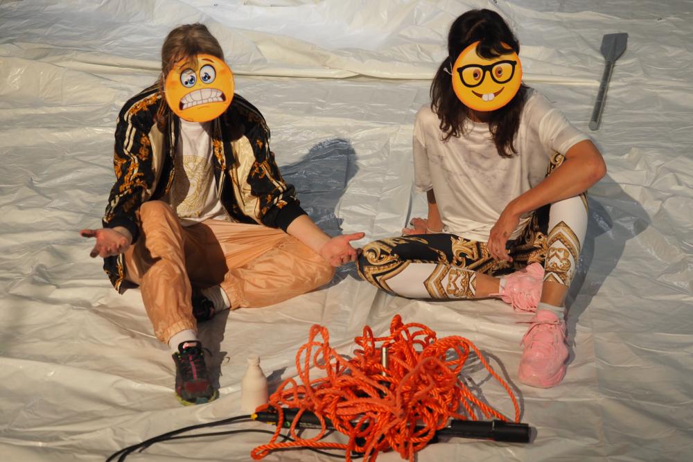 idea, direction and performance Karen Røise Kielland & Katja Dreyer | dramaturge Marit Grimstad Eggen | scenography Ole Martin Lund Bø | composition & music Jessica Sligter | lighting design Ingeborg Staxrud Olerud | speachcoach Isabelle Barth | co-production Buda, Kunstenwerkplaats Pianofabriek, Black Box teater | support Norsk Kulturråd, the Flemish Community, The Flemish Community Commission, Fond for Utøvende kunstnere, Norsk Fond for Lyd og Bilde, Performing Arts Hub Norway | thanks to Linda Theodoru, Danae Theodoridou, Dimitris Anagnostopoulos, Anastasia Efstathiou, Willem De Wolf, The Norwegian Institute, Athens Panayotis and his mother, kunstencentrum Nona, Kaaitheater, PACT Zollverein