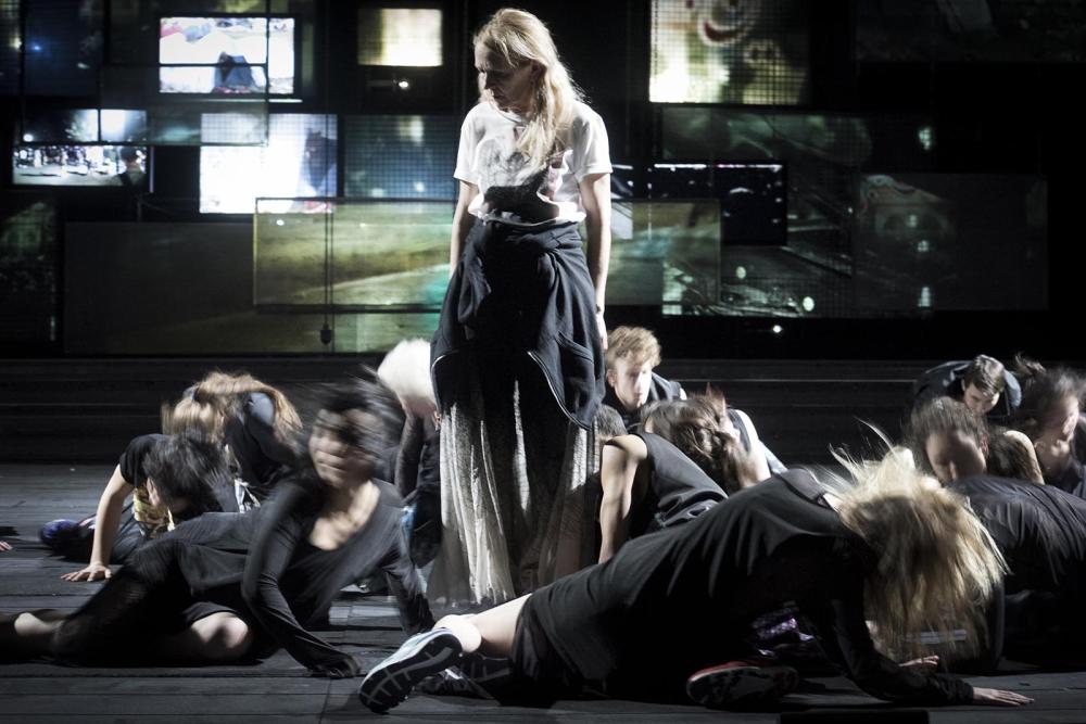 Her text has proved to be more than prophetic: all the images that are now burnt into our memories – from the washed up corpses of children to sinister refrigerated vehicles – she minutely calls to life years before the actual events. The main character in Jelinek’s pieces seems to be language itself. She is less interested in classical dialogue than in the chorus texts and messages delivered by messengers that she finds in Greek tragedy. The perspective is mostly that of the refugee, but sometimes also that of the fearful white European. Guy Cassiers matches Jelinek’s torrent of words with images and with four dancers in a choreography by Maud Le Pladec.