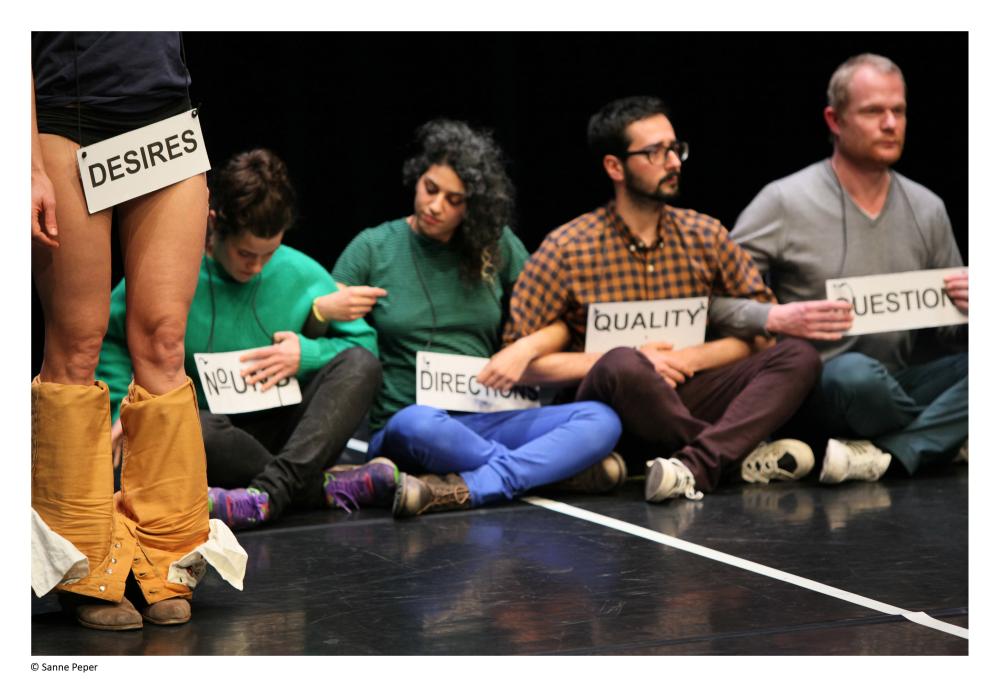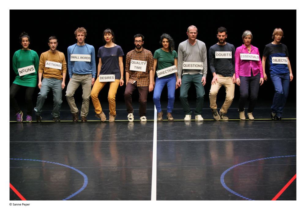 concept, choreography & direction Ivana Müller | performers Sarah van Lamsweerde, Pere Faura, Karen Røise Kielland, Katja Dreyer, Pedro Ines, Stephen Liebman, Yannick Greweldinger, Clara Amaral, Noha Ramadan, Bas Jilesen | artistic and textual advice Bill Aitchison | advice Jonas Rutgeerts | sound design Viljam Nybacka | costum design Liza Witte | light design & technical direction Martin Kaffarnik | production Mels Kroon | management I’M’Company/ Wilma Kuite - alles voor de kunsten (NL) & Chloé Schmidt (FR) | developed as a part of Encounters project (Frascati, Amsterdam 2012) | supported by Fonds Podiumkunsten, Amsterdams Fonds voor de Kunst, SNS Reaal Fonds
