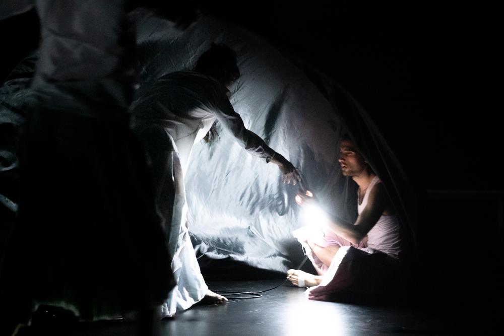 Where Daniel Linehan's previous performance Listen Here: These Woods took place among the trees, Listen Here: This Cavern invites you to descend into the darkness of a cave, to sharpen your senses and to listen. The music of Pauline Oliveros - recorded in a gigantic underground cave - accompanies the dynamic movement spirals of the performers. Let your senses get used to the dark and listen to the sound vibrations and dancers circling in the darkest space of Kaaitheater.