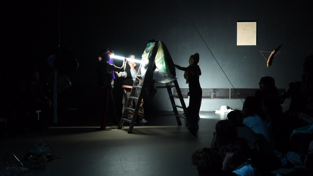 Drawing on a variety of practices – the study of fungi, fashion, fermentation, dance and sculpture - MOLD approaches the theatre machine as a multiplicity of bodies. It strives to stage not only a performance but also a farm, an environment where dance, objects, audience, light, music, scents and costumes interact as living cultures. A garden dedicated to cultivating, abandoning, inoculating, braiding, duplicating, sprouting, warming up and decaying.