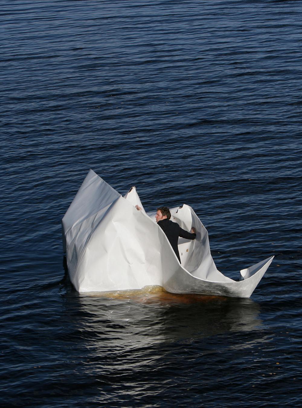 Together with the audience, the German artist Frank Bölter folds a paper boat and sails out into the canal in it. With any luck he bobs around for hours. If his luck runs out he sinks before he can return to shore. Nevertheless, he is the captain and stays with his ship! Bölter´s work is characterised by highly poetic images and is often performed in public space.