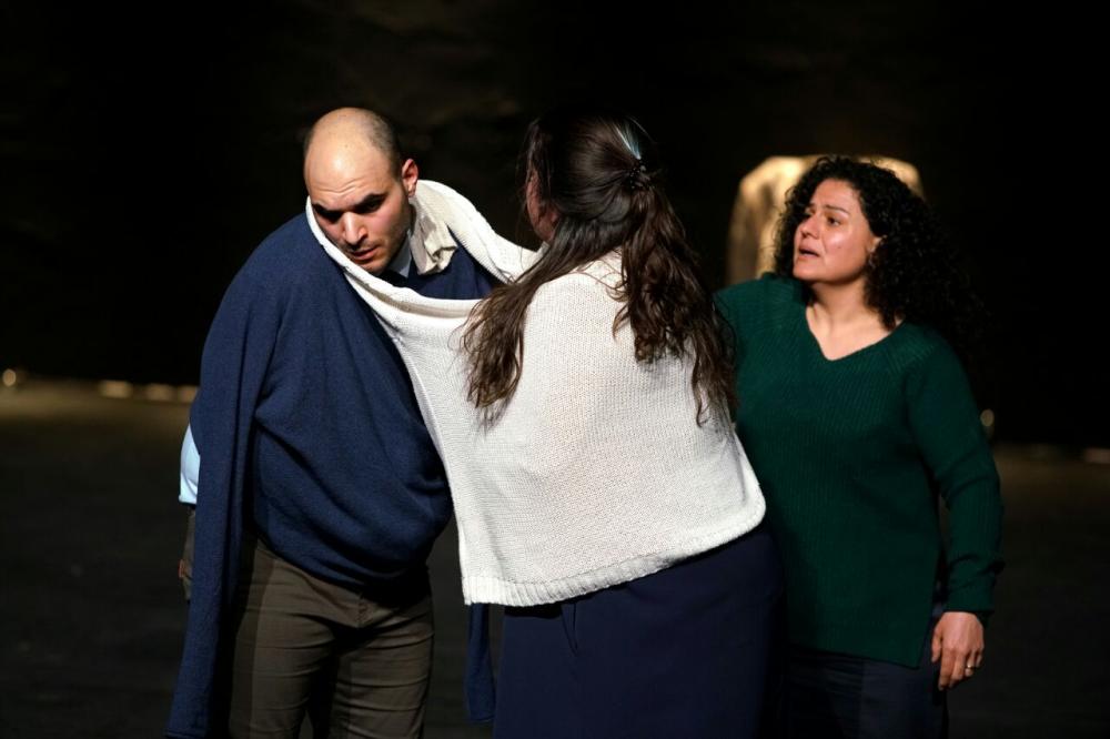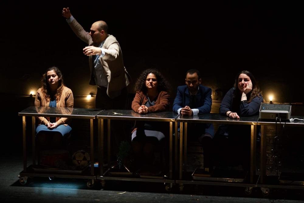 directed by Bashar Murkus | text Bashar Murkus & the project team | with Raeda Ghazaleh, Shaden Kanboura, Khuloos Basel Tannous, Husam Al-Azza, Henry Andrawes | scenography Majdala Khoury | dramaturgy Ala Hlehel | light Firas Tarabshi | production management Laura Hawa | production assistant Siwar Awwad | graphic design Nihad Awidat | media coordination Rasha Hilwi | production Khashabi Theatre, The Palestinian National Theatre – El-Hakawati | special thanks Fady Jomar, Farag Suleiman, Al-Midan Theatre, Al Yarmouk refugees camp | in collaboration with MOUSSEM, NOMADIC ARTS CENTER | support The Arab Fund For Arts and Culture – AFAC, ROSA LUXEMBURG FOUNDATION