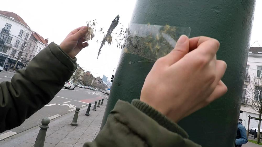 With a role of tape and a magic lantern, the children in PLAKFILM gauge the turbulence of our age. They roll out transparent tape in the streets where they grew up. When they strip the tape away, an imprint of the city comes with it: dust, sand, candy wrappers, insects, glass, bits of fluff… The strips of tape thus form an ultra-realistic diary that is brought to life using an old magic lantern. Can all these forms and images help us to predict the future?