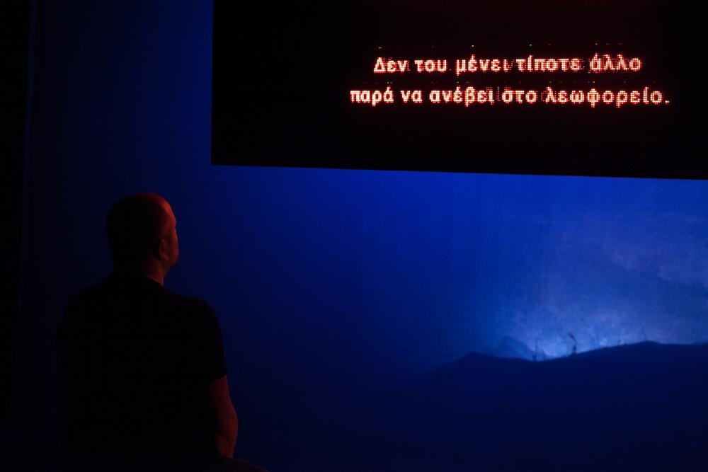 text Said Reza Hosseini Adib, Samaneh Arian, Aristotle, Ghazi Ayari, Thomas Bellinck, Rihab Chaabane, Abir Farhat, Karima Ganji, Parisa Heidari, Chamseddine Marzoug, Vasilis Mathioudakis, Mounir, Fatemeh Mousavi, Mohammad Javad Mousavi, Farouk Ouartani, Racist Violence Recording Network, Marwen Sammoud, Ervin Shehu, Yiouli Vitou | artistic collaborator Jeroen Van der Ven | directing Thomas Bellinck | dramaturgy Esther Severi | interpreting Said Reza Hosseini Adib, Yasmine Bhar, Hayfa Ghozzi, Rym Haddad, Pafsanias Karathanasis, Amal Rouissi, Georgia Spyropoulou, Aisha Zaied | lighting design Lucas Van Haesbroeck | lighting technician Marie Vandecasteele | performance Said Reza Hosseini Adib, Ghazi Ayari, Thomas Bellinck, Abir Farhat, Karima Ganji, Parisa Heidari, Chamseddine Marzoug, Mounir, Fatemeh Mousavi, Mohammad Javad Mousavi, Farouk Ouartani, Nikos Palaiologos, Orestis Seferoglou, Ervin Shehu, The 5th Grade of the 28th Elementary School of Athens, Yiouli Vitou | production management Celine van der Poel | production Dimitra Dernikou, Yalena Kleidara, Francesca Pinder, Sandra Raes Oklobdzija, Aisha Zaied | pyrotechnics & set technician Niels Antonissen | research & production assistance Kaat Balfoort, Hayfa Ghozzi, Pafsanias Karathanasis, Bilel Melki, Amal Rouissi, Georgia Spyropoulou, Laurien Versmissen | scenography Camille Lemonnier | set Niels Antonissen, Guy Cuypers, Daan Roosen, Toneelhuis Decoratelier, Tim Vanhentenryck, Marjan Verachtert | sound design Bart Celis | sound editing Lars Morren, Emiel Redant, Johannes Ringoot | sound technician Arthur De Vuyst | stagecraft Mathias Batsleer, Steven Bontinck, Ijf Boulet, Victor Dries, Johannes Rigoot, Diederik Suykens, Bert Van Dijck | technical production management Arthur De Vuyst | transcription Samia Amami, Sana Chamekh, Farideh Ghalandari, Amira Hamdi, Cyrine Ben Ismail, Yalena Kleidara | translation & surtitles Yasmine Akrimi, Amal Boualga, Vassilis Douvitsas, Mahdieh Fahimi, Farbod Fathinejad, Iannis Goerlandt, Welid Hmeissia, Haythem Khamri, Yalena Kleidara, Marwa Manai, Anna Muchin, Eleni Nasiou, Juliane Regler, Mona Silavi | production ROBIN | co-production Kaaitheater,Dream City / L’Art Rue, De Grote Post, Fast Forward Festival / Onassis Cultural Centre, Kunstenfestivaldesarts | with the support of KASK / School of Arts of University College Ghent, LabexMed / Maison Méditerranéenne des Sciences de l'Homme (Marseille), The Flemish Community of Brussels, The Flemish Government | concept inspired by Grégoire Chamayou’s Manhunts: A Philosophical History | additional research interviews The Asylum Service, The European Border and Coast Guard Agency, The Hellenic Police | thanks to Halima Aissa, Ifigeneia Anastasiadi, Dimitris Angelidis, Anonymous, Katia Arfara, Simon Baetens, Louise Bergez, Marc Bernardot, Moon Blaisse, Hassen Boubakri, Sana Bousbih, Dimitris Christopoulos, Ismael Cissé, Patrick De Coster, Johan Dehollander, Bert De Puydt, Omar Fassatoui, Apostolis Fotiadis, Jan Goossens, Hamma Weld Hamida, Louis Janssens, Lobna Jlassi, Ebia Joel, Wafa Kanzari, Khalid Koujili, KVS, Malek Lakhal, Mostfa Lakhdher, Lorena Lando, Leon Konda Ler, Mohsen Lihidheb, Mahdi Mabrouk, Jalel Mahmoudi, Ahmed Mansour, Brigitte Marin, Fatma Mathlouthi, Rosine Mbakam, Yonus Mohamed, Selma Ouissi, Kostis Papaioannou, Lefteris Papagiannakis, Clio Papapantoleon, Stéphanie Poussel, Fanny Robles, Eleni Spathana, Isabel Mohedano Sohm, Imed Soltani, Timo Sterckx, Loes Swaenepoel, Toneelhuis, Carine van Bruggen, Naomi Van Der Horst, An van. Dienderen, Eleonore Van Godtsenhoven et al.