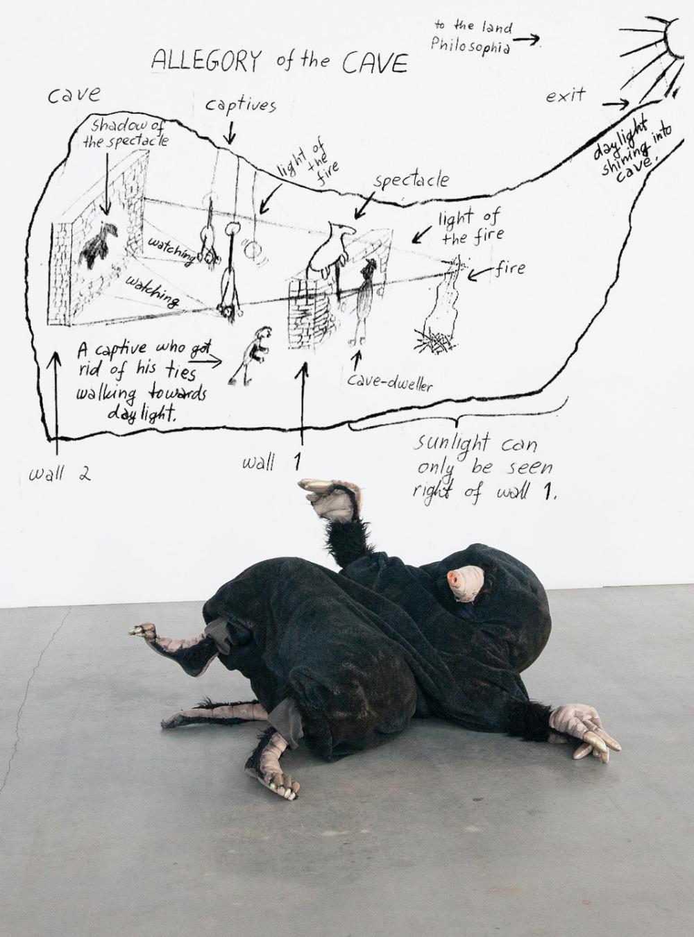 Fantasy animals, giant moles and figures from the underworld populate this allegorical world. The cave dwellers travel from city to city like a circus to present their tale in theatres and at festivals. In this ‘ecosophical’ theatre, the human perspective is weighed up against the animal, the mineral and the non-organic. Philosophical myths and science-fiction-like tales and utopias are woven into one another.
