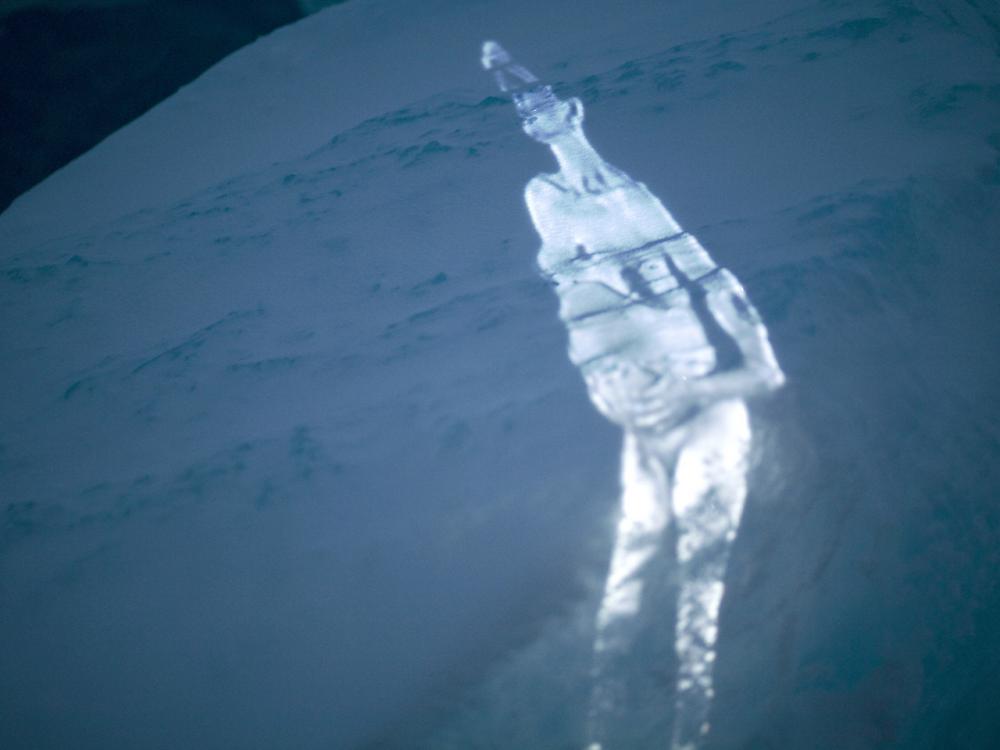 ![]() | David Buckland – Pregnant Ice David Buckland projected images of a pregnant woman onto a northern ice-field. |
