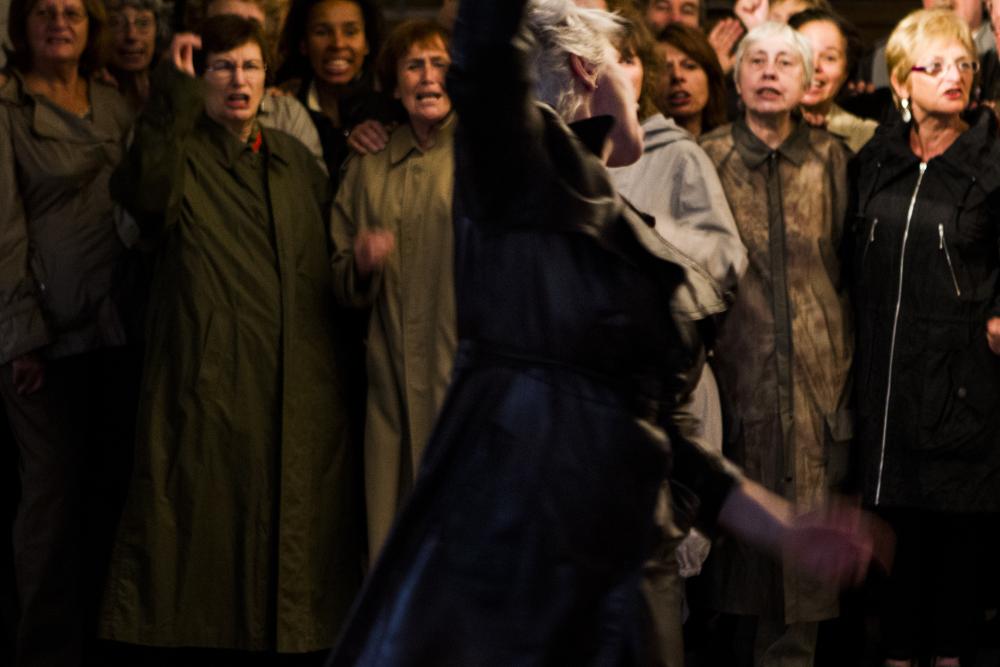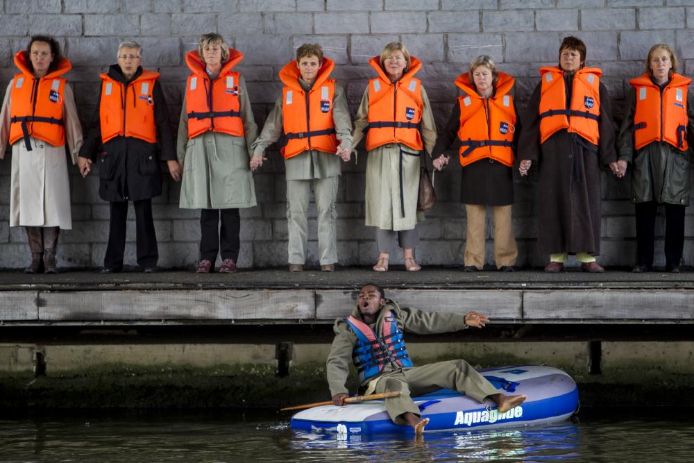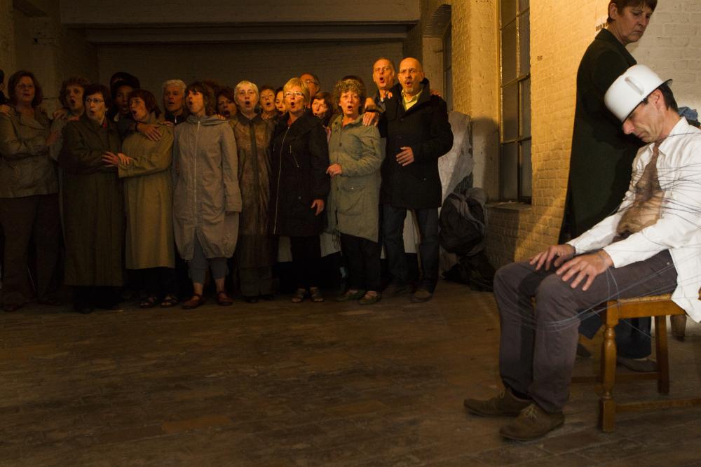 The performance is staged in the streets near the Kaaitheater, whose names all refer to WWI: IJzerplein, Ieperlaan, Diksmuidelaan, Negende Linielaan, Pantsertroepenplein and so on. It ends at the Kaaitheater with the performance of Ode aan de deserteur [Ode to the Deserter] by the Brussels-American composer Frederic Rzewski. The performance will also consist of songs and poems (Joyce, Tucholsky, Van Ostaijen etc.) on desertion and accounts by runaway conscientious objectors.