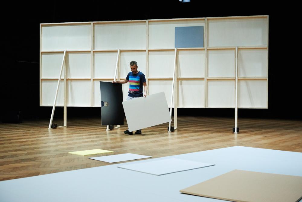 In an equally obsessive way the colour grey appears in his recent work, as part of that engagement with language. He juxtaposes the Grauraum or greyspace with the black box of the theatre or the white cube of the visual arts. He has since christened his own studio Grauraum.
