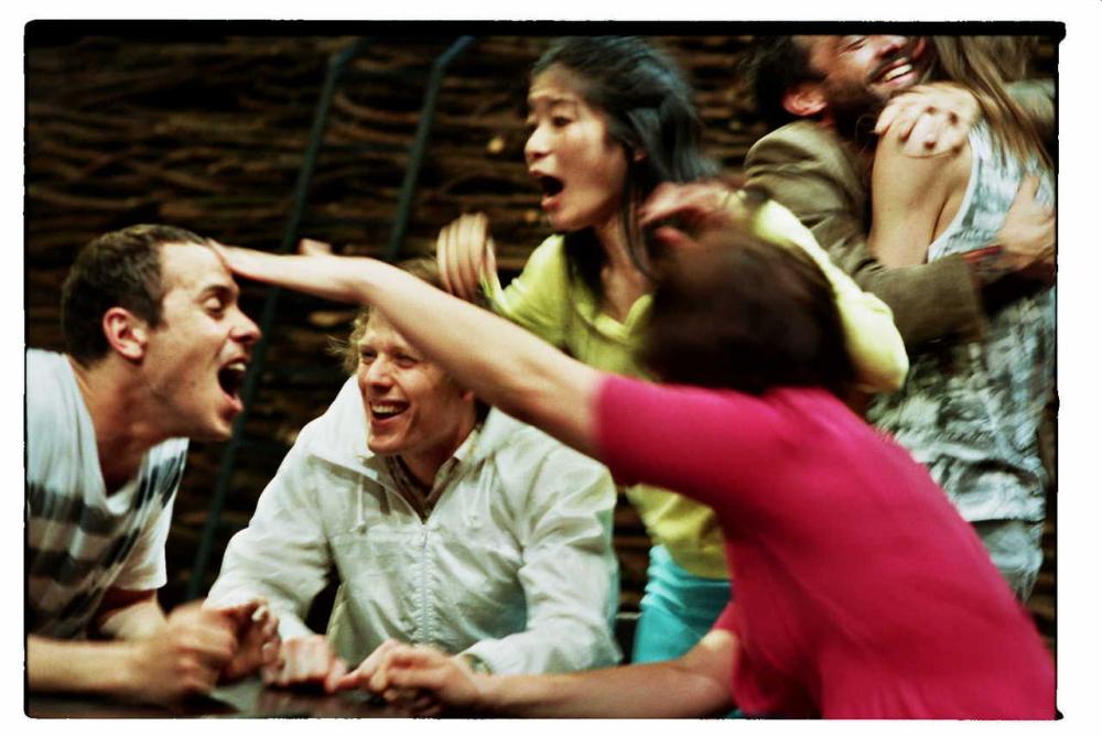 choreography Meg Stuart | created with and performed by Joris Camelin, Alexander Jenkins, Adam Linder, Anja Müller, Kotomi Nishiwaki, Frank Willens | dramaturgy Bart Van den Eynde | music Hahn Rowe | set Doris Dziersk | collaboration set Rita Hausmann | costumes Nina Gundlach | light Jan Maertens | technical direction Britta Mayer | production manager Christine Peterges | stage manager Milos Vujkovic | assistance costumes Noélie Verdier | assistance production Marlène Bunge | apprentice Àfrika Martínez Ferrin | production Damaged Goods | co-production Kaaitheater (Brussels), Théâtre Garonne (Toulouse), Théâtre de la Ville (Paris), Volksbühne am Rosa Luxemburg Platz (Berlin), PACT Zollverein (Essen) | supported by the Flemish Government, the Flemish Community Commission (VGC), Omnia Leuven