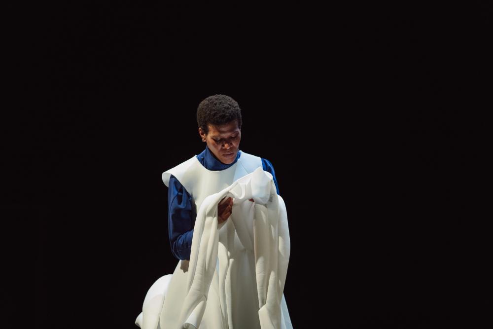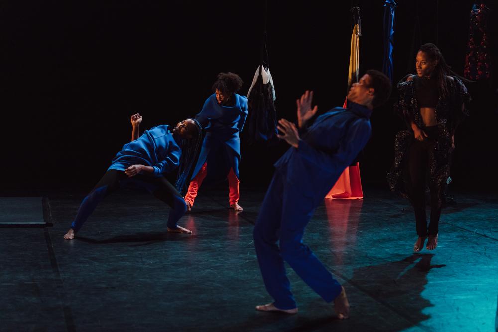 concept Dorothée Munyaneza | with Ife Day, Moya Michael, Asmaa Jama, Elsa Mulder, Nido Uwera, Dorothée Munyaneza | artistic collaboration, costumes, scenography « suspension » Stéphanie Coudert | scenographic advice Vincent Gadras | thanks to Hlengiwe Lushaba Madlala, Zora Santos, Keyierra Collins | music Alex Inglizian, Alain Mahé, Ben Lamar Gay, Dorothée Munyaneza | sound desgn Alain Mahé | light design Christian Dubet | production coordination & development Emmanuel Magis (Mascaret production) | all-round technique Marion Piry | light technique Marine Le Vey, Anna Geneste | sound technique Camille Frachet, Alice Le Moigne | translation surtitles Olivia Amos | production Compagnie Kadidi, Mascaret production | co-production Théâtre de la Ville - Paris, Festival d’Automne à Paris, Charleroi-Danse, Centre Chorégraphique de Wallonie-Bruxelles, Châteauvallon – Scène nationale, Théâtre de Saint-Quentin-en-Yvelines - Scène nationale, Le Grand T – Théâtre de Loire-Atlantique, CCN-Ballet National de Marseille (Accueil Studio 2020), NEXT Festival / La Rose des Vents - Scène nationale Lille Métropole Villeneuve d’Ascq, Théâtre National de Bretagne, Théâtre de Nîmes – Scène conventionnée d’intérêt national – Art et Création – Danse Contemporaine | with the support of DRAC Provence-Alpes-Côte d’Azur, Ministère de la Culture, Fonds de dotation du Quartz - Scène nationale de Brest, La Chartreuse de Villeneuve lez Avignon – Centre national des écritures contemporaines, de la SPEDIDAM, du Département des Bouches du Rhône et de la Ville de Marseille. | Dorothée Munyaneza is associated artist at Théâtre de Chaillot (Paris) | Mailles premiered at Charleroi on 23 & 24/10/2020