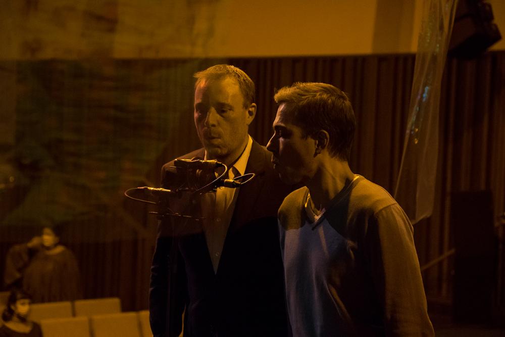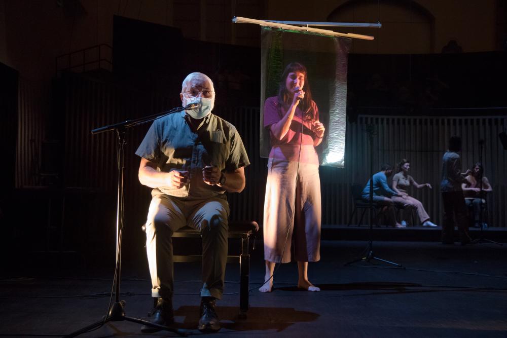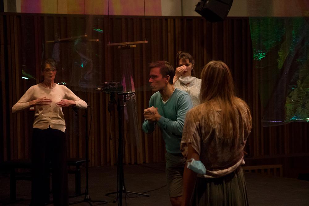 concept & direction Myriam Van Imschoot | co-creation and performance HYOID voices: Fabienne Seveillac, Andreas Halling, Els Mondelaers, Gunther Vandeven | performance 15 local performers | sound design and electronic concept Fabrice Moinet | sound engineer Wannes Gonissen | electronics assistant Matthieu Virot | light design Lucas Van Haesbroeck | advice lay-out and costume design Nadine Van Imschoot, Filip Eyckmans | producer Hiros | delegated producer La Muse en Circuit | co-production Muziekcentrum De Bijloke, Kunstenwerkplaats, Kunstencentrum BUDA (Kortrijk) | in collaboration with Walpurgis | supported by the Flemish Government, Vlaamse Gemeenschapscommissie | internship Sophia Bauer | thanks to Emmanuel Desmyter, Jean-Manuel Candenot, all participants who joined us during the rehearsals, Marcus Bergner, Björn Schmelzer's seminars, Ismail Fayed and the lab of radical polyphony with the support of Sarma, Myriam Pruvot, the performers of What Nature Says, Bahae Eddin Rouas, GC De Kriekelaar