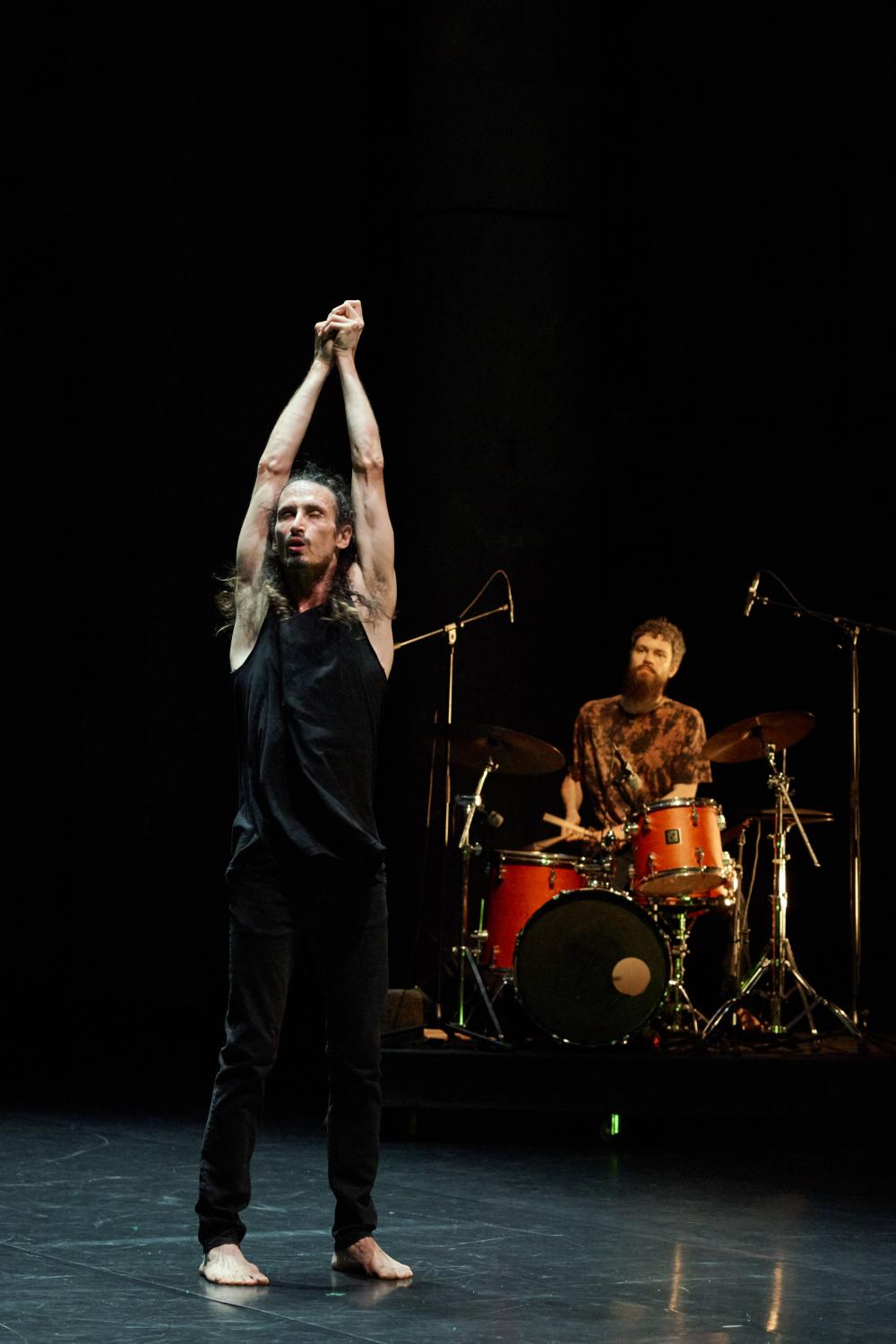 Signs of Affection was created in 2010 within the frame of the ArtCena festival in Rio de Janeiro. After spending time in a studio to research material for VIOLET (2011) and while getting impressions of the city, Meg Stuart made this short solo as an act of erasure and devotion. In a powerful blur of emotions, the intensity of the movements gets framed to the hands and the head. An explosive drum solo partners the performance, which fades out in a series of sensorial sculptures and a resonating silence.