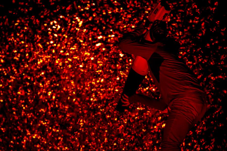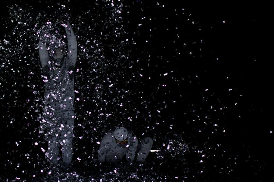 • Evaporated landscapes was Ingvartsens eerste choreografie voor materialen als schuim, mist, licht en geluid. De choreografie neemt hier de vorm aan van een relatie tussen efemere elementen die rondzweven en in de ruimte oplossen. Het is alsof je als toeschouwer uiteindelijk de deinende bewegingen van de materialen overneemt. Alles baadt in een sfeer van rust en kalmte, fascinatie en impressies die we voelen bij een natuurwonder.