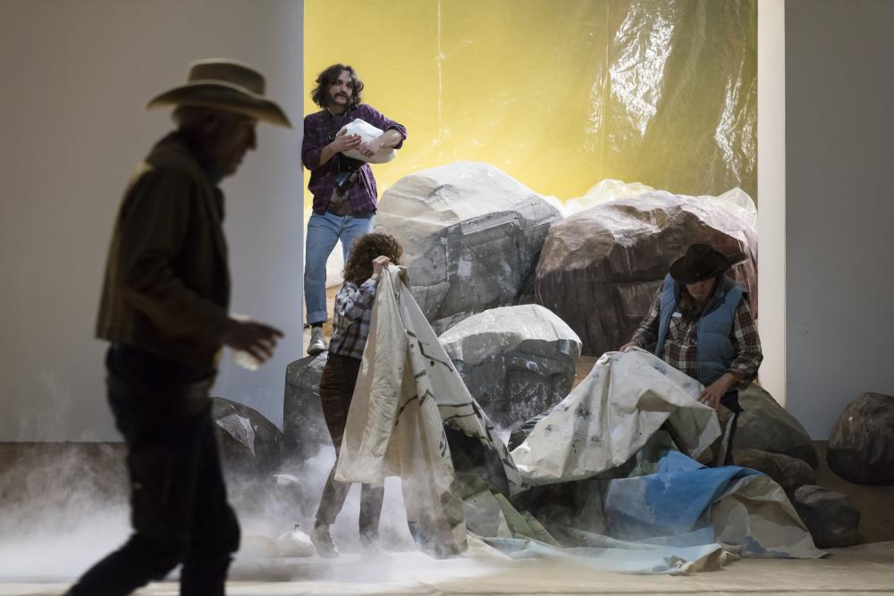 with Peter Brombacher, Johan Leysen, Stefan Merki, Julia Riedler, Franz Rogowski | stage production Philippe Quesne | stage design Philippe Quesne | stage design assistant Elodie Dauguet | lighting Philippe Quesne, Pit Schultheiss | dramaturgy Johanna Höhmann | artistic assistance Leo Gobin, Elodie Dauguet | concept Philippe Quesne | support Goethe Institut & Federal Foreign Office Germany l produced by Münchner Kammerspiele l coproduced by Nanterre‑Amandiers, centre dramatique national