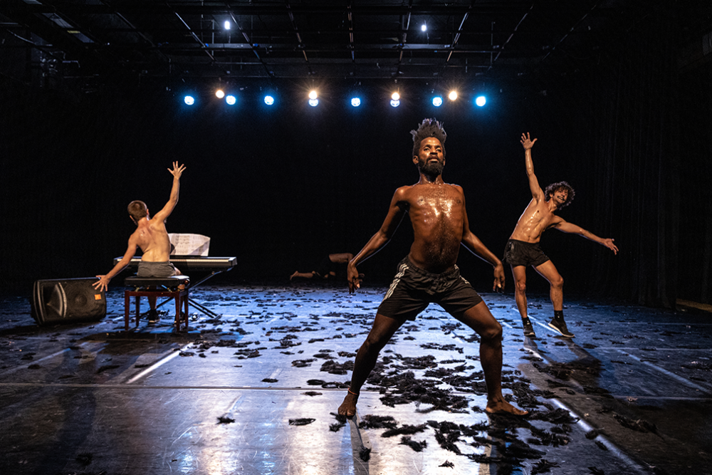 presentation Kunstenfestivaldesarts, Kaaitheater & Zinnema | concept, direction, costumes Marcela Levi, Lucía Russo | performance, co-creation Alexei Henriques, Ícaro Gaya, Lucas Fonseca, Martim Gueller, Tamires Costa, Washington Silva | interlocution Ana Kiffer, Felipe Ribeiro | light design Leticia Skrycky | technical direction Daniel Uryon | sound all the team | production Improvável Produções | co-production Kaaitheater, Kunstenfestivaldesarts, PACT Zollverein, Julidans, Something Great | distribution Something Great | with the support of Centro Coreográfico da Cidade do Rio de Janeiro/Secretaria Municipal de Cultura, Prefeitura da Cidade do Rio de Janeiro, Consulado da Argentina no Rio de Janeiro, Espaço Cultural Sítio Canto da Sabiá, Instituto Villa-Lobos UNIRIO, Kunstenwerkplaats Pianofabriek | thanks to Alberto Lalouf, Adriana Coma, André Lepecki, Angela Camargo Seixas, Ana Kavalis, Andrea Del Giorgio, Carolina Herman, Cecilia Russo, Diego Dantas, Doriana Mendes, Daniel Bargues, Fernando Salis, Ginetta Mortera, Giulia Messia, Gustavo Ciríaco, Irene Lenz, Katharina Wallisch, Laura Erber, Luis Maria Giannetti, Maria Villalonga, Marta Heumann, Patricia Giannetti, Paula Delecave, Paula Giannetti, Rui Silveira, Sérgio Barrenechea, Sérgio Rezende, Sol Giannetti, Susana Russo, Teresa Bofill, Valéria Meireles, Vera Mantero, Verónica Russo, Victoria Giannetti