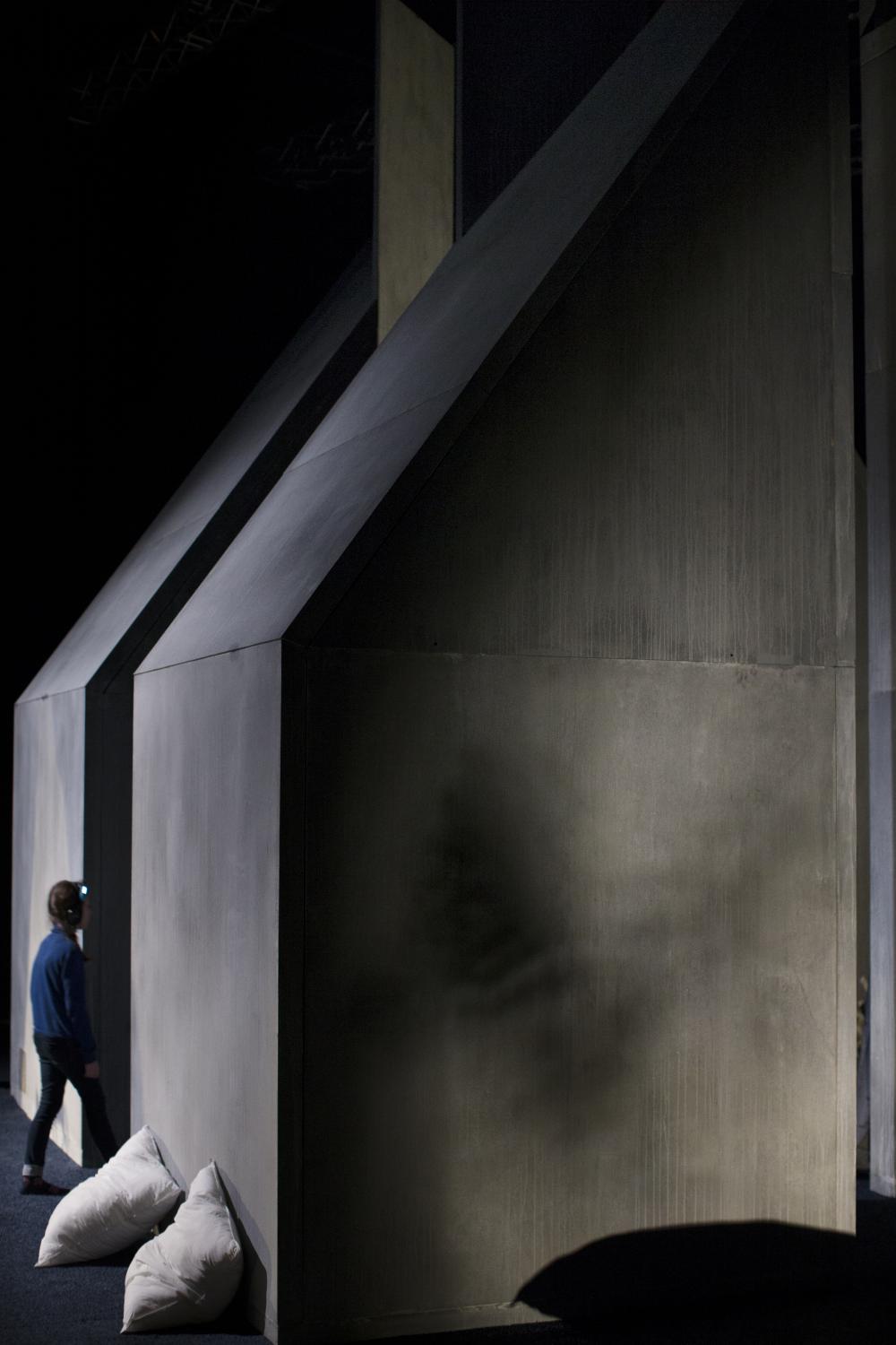 Een blok met een driehoek erop: het prototype van een huis zoals getekend door een kind. Het kan een veilige haven zijn, een plek van intimiteit en geborgenheid, maar achter de gevel kan evengoed miserie schuilgaan. Zodra je Huis binnenwandelt, ontdek je de dingen die meestal achter gevels verborgen blijven. Met een koptelefoon op kun je de ruimte op eigen houtje verkennen. Wie woont er? Wat doen en denken ze? En waarom is het vaak zo stil? Huis gaat over de donkere hoeken van het leven – en over hoe ieder daar op zijn eigen manier mee om probeert te gaan. Als dochter van een moeder die met een zware depressie kampte, maakt Inne Goris met Huis een uiterst persoonlijke voorstelling voor volwassenen én kinderen.