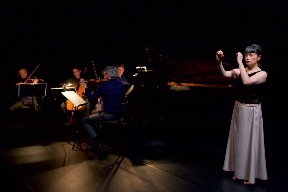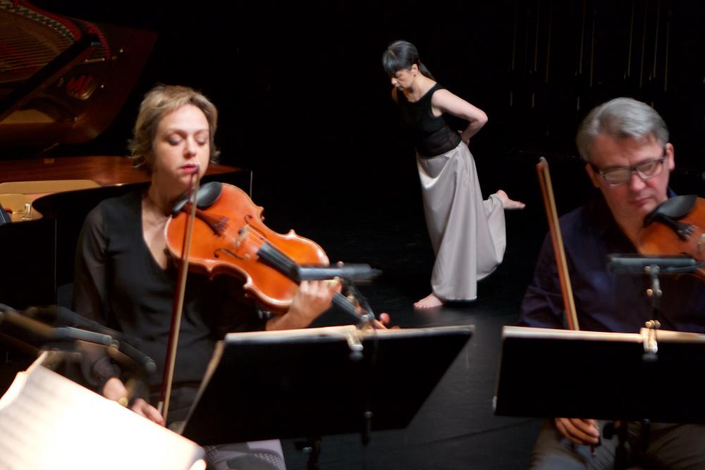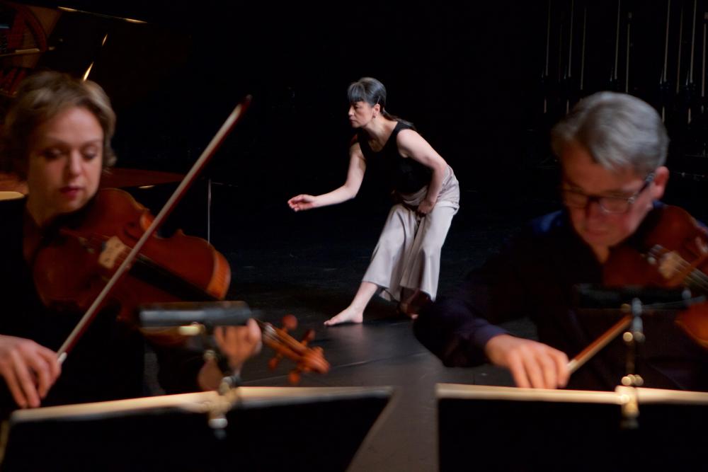 choreography, solo performance Fumiyo Ikeda | piano Jean-Luc Fafchamps | violins George van Dam, Igor Semenoff | viola Aurélie Entringer | cello Geert De Bièvre | light design Hans Meijer | co-production Opéra de Lille | Support de Vlaamse Gemeenschap