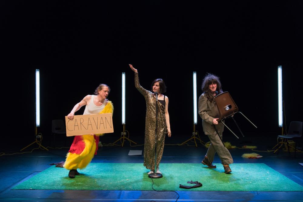 director Tim Etchells | devised with and performed by Jerry Killick, Richard Lowdon, Claire Marshall | created with input from Robin Arthur, Cathy Naden | lighting design Jim Harrison | design Richard Lowdon | production management Jim Harrison | sound technicians Greg Akenhurst, Doug Currie | project assistant Anna Krauss | music electronics & sound editing John Avery | loops Tim Etchells | Grave from Telemann Fantasia Number 1 in B-Flat Major Aisha Orazbayeva | production Forced Entertainment | co-production PACT Zollverein, HAU Hebbel Am Ufer, Künsterlhaus Moustonturm Tanzquartier Wien Viena, ACCA Attenborough Centre for the Creative Arts, University of Sussex, the Spalding Gray Consortium – On the Boards, PS122 NYC, Walker Art Center, Warhol Museum | support Fondation d'Entreprise Hermès