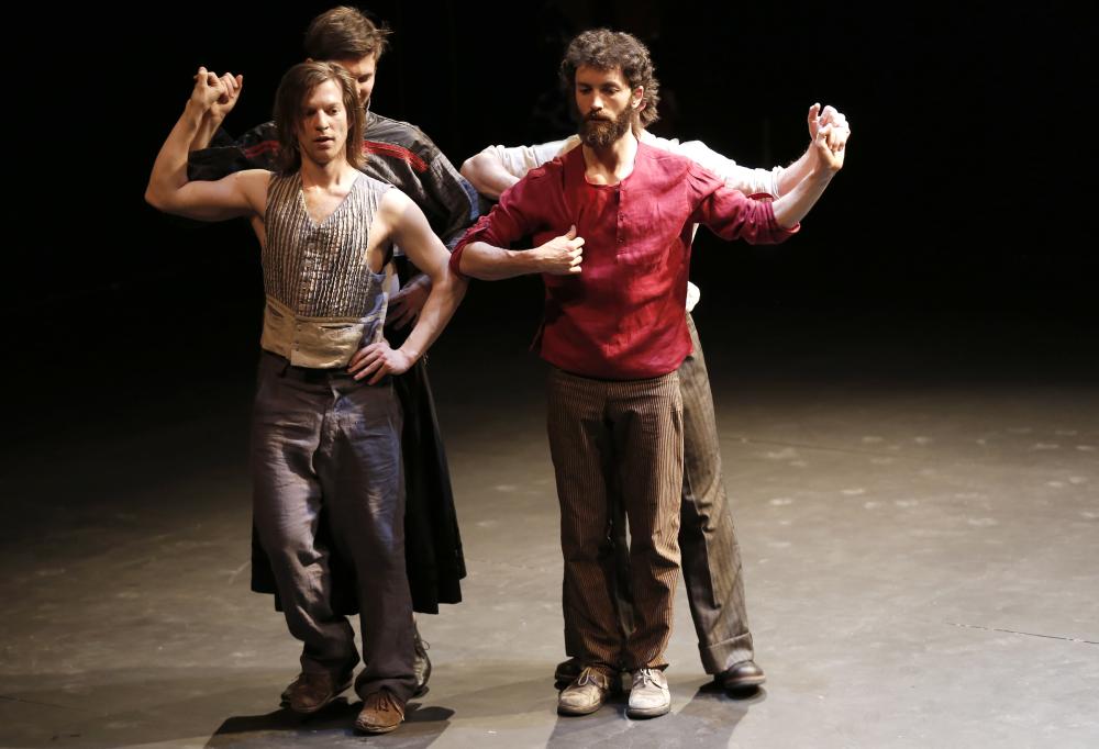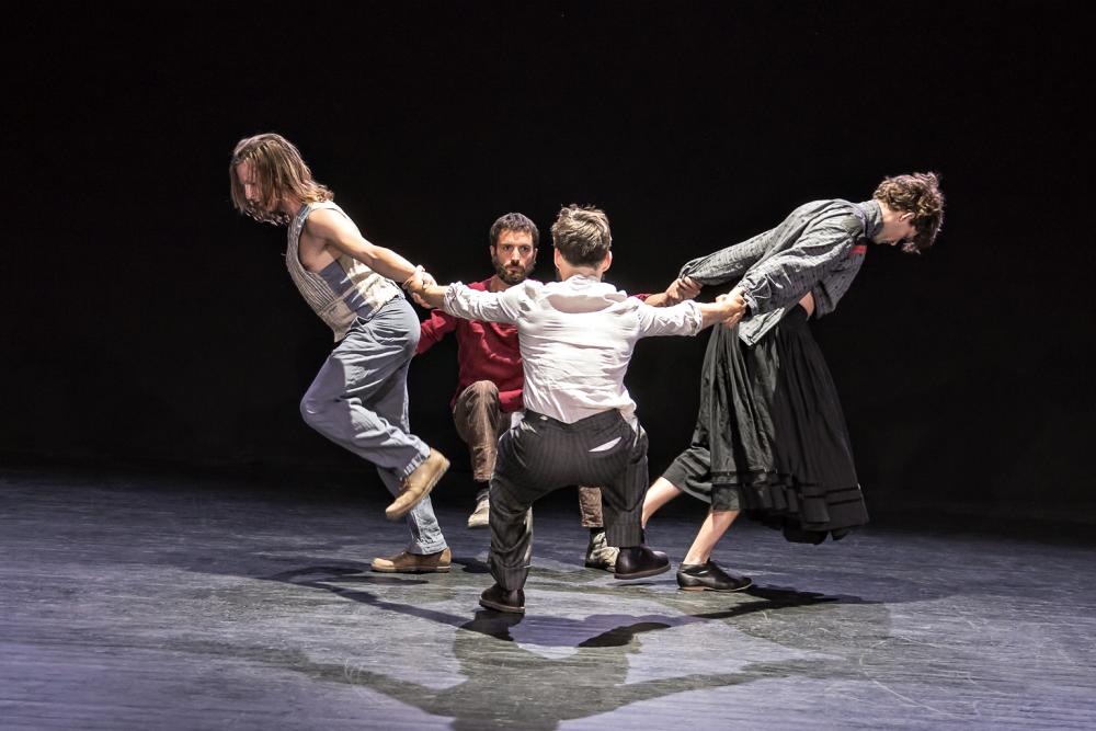 idea, choreography, performance, music Simon Mayer | performance, music Matteo Haitzmann, Patric Redl, Manuel Wagner | special instruments Hans Tschiritsch | stage and costume design Andrea Simeon | light design Hannes Ruschbaschan, Martin Walitza | artistic consultant Frans Poelstra | production Sophie Schmeiser, Elisabeth Hirner | co-production Kopf hoch, brut Wien, Gessnerallee Zurich, zeitraumexit Mannheim and Tanz ist Dornbirn | touring production Sophie Schmeiser and Hiros | with the kind support of the City of Vienna's Department of Cultural Affairs, the Arts Division and the Culture Division of the Federal Chancellery of Austria, Kulturland Oberösterreich, Vlaamse Gemeenschap, Kunstenwerkplaats Pianofabriek, WP Zimmer Antwerp, im_flieger, Kunst- und Kulturverein SPIEL | thanks to Simon Zöchbauer, Julian Rubisch, ALMA (Marlene Lacherstorfer, Julia Lacherstorfer, Evelyn Mair, Marie-Therese Stickler), Godi Burgstaller, Chris Standfest, Andrea Amort, Munderfinger Goaßlschnalzer, Altstädter Bauerngmoa, Pramtaler Volkstanzgruppe, Elio Gervasi/Raum 33