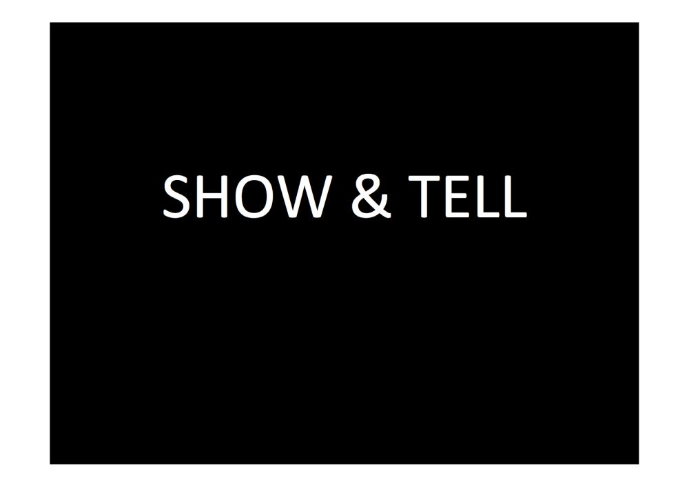 In Show And Tell hebben ze het over wat hen bij het maken van hun duetten en ander werk inspireerde, over de rol van mimicry in het creatieve proces; ze tonen de aanzetten van beelden en composities en hoe ze die verwerken of verwerpen, herwerken en opnemen in de uiteindelijke voorstelling. Een unieke inkijk in het creatieve werk van twee geweldige kunstenaars.